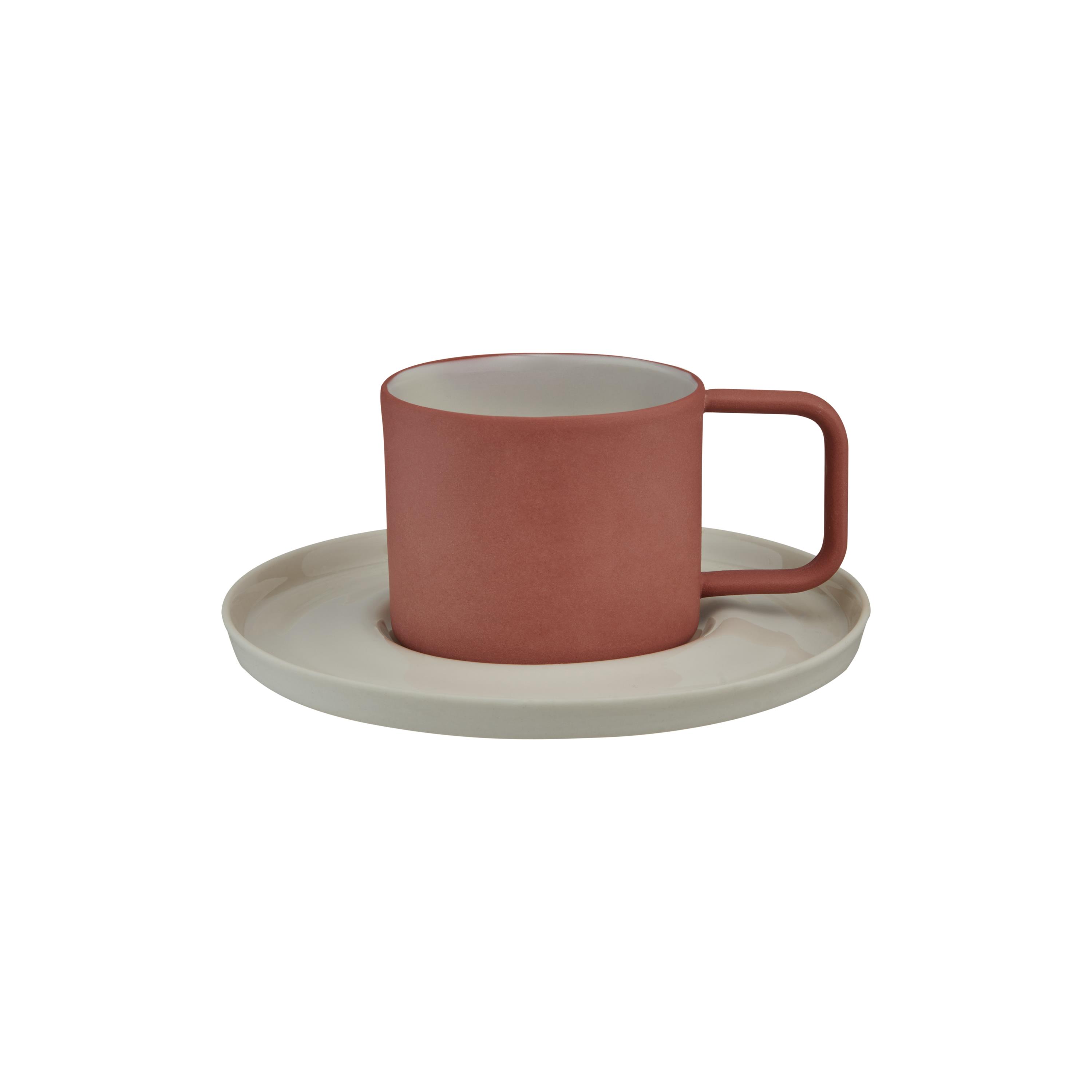 Josephine El Yapımı Porselen Türk Kahvesi Fincanı & Tabağı / Kiremit - Beyaz (CP-JETK157)